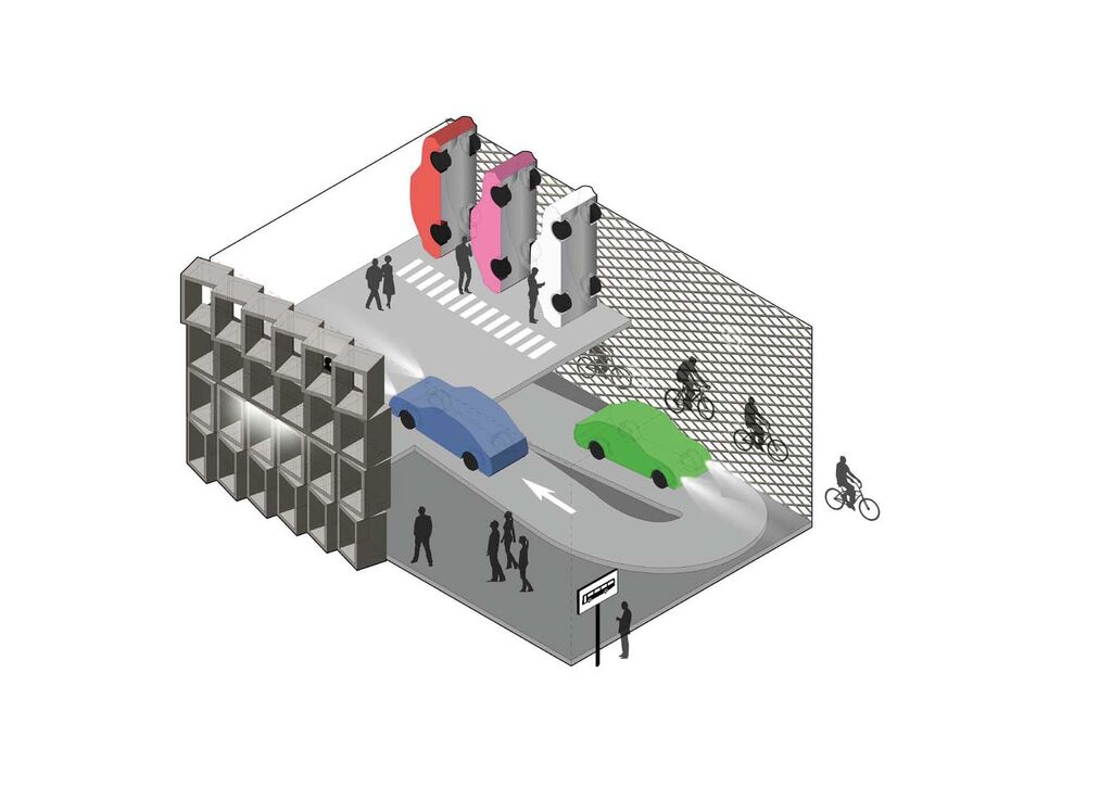 El edificio ocupa una posición crucial, a la entrada de la ciudad por la autopista Ma-19, la vía de acceso utilizada por todos los turistas que llegan a través del aeropuerto y también por, como mínimo, toda la comarca del Migjorn. Proponemos aprovechar esta situación para convertir el edificio en un gran hub: un intercambiador desde el que modificar la movilidad completa de la ciudad.